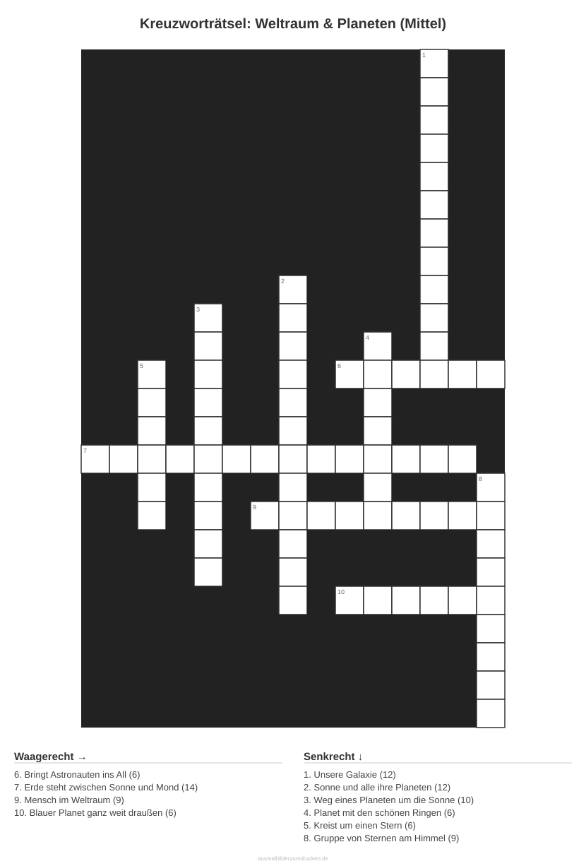 Kreuzworträtsel: Weltraum & Planeten (Mittel)