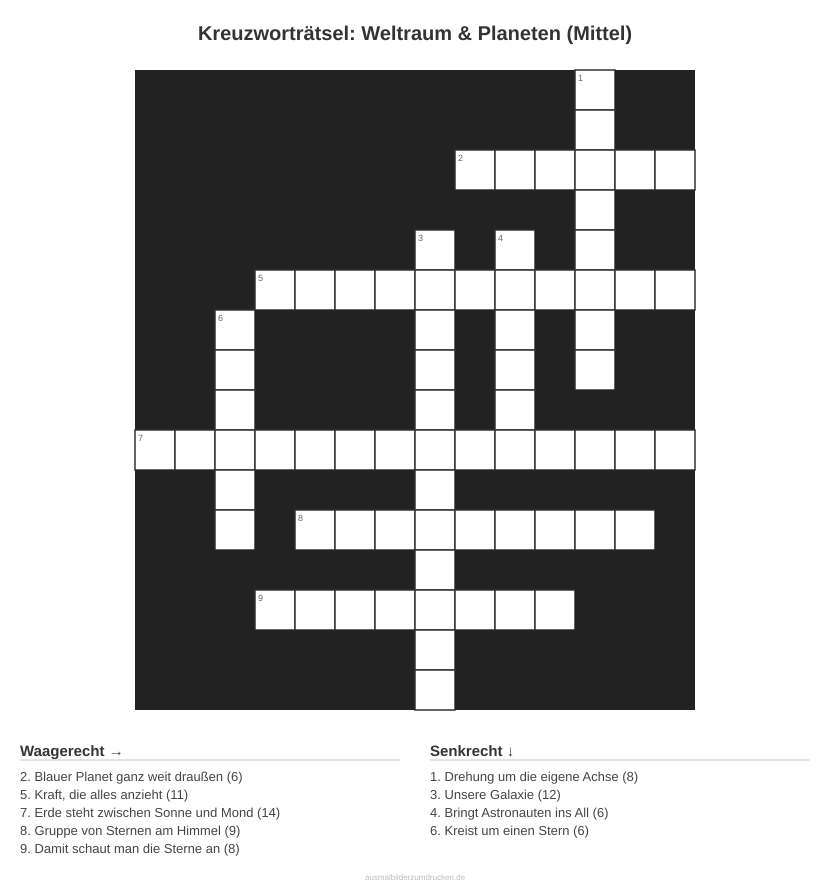 Kreuzworträtsel: Weltraum & Planeten (Mittel)