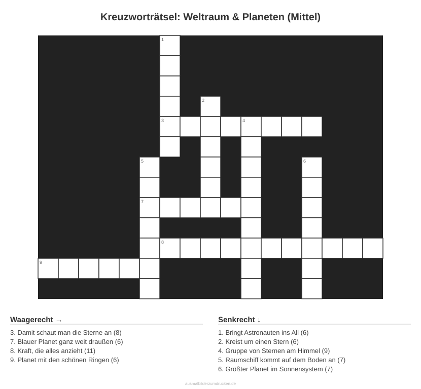 Kreuzworträtsel: Weltraum & Planeten (Mittel)