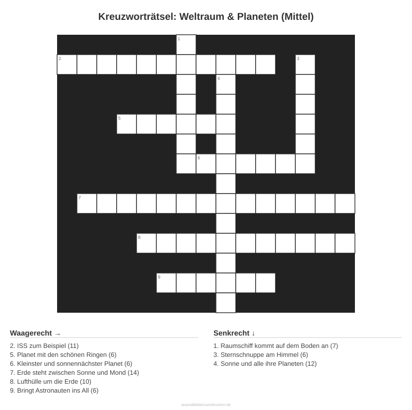 Kreuzworträtsel: Weltraum & Planeten (Mittel)