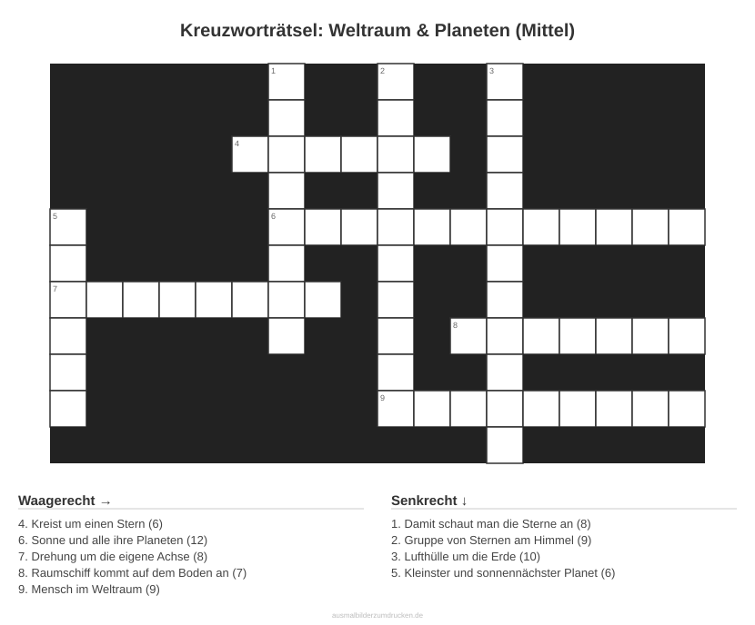 Kreuzworträtsel: Weltraum & Planeten (Mittel)