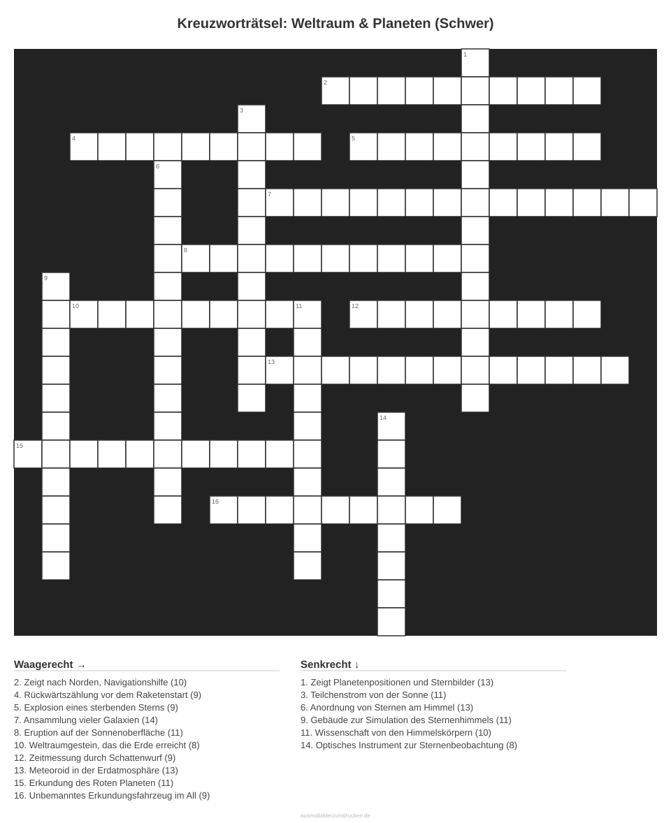 Kreuzworträtsel: Weltraum & Planeten (Schwer)