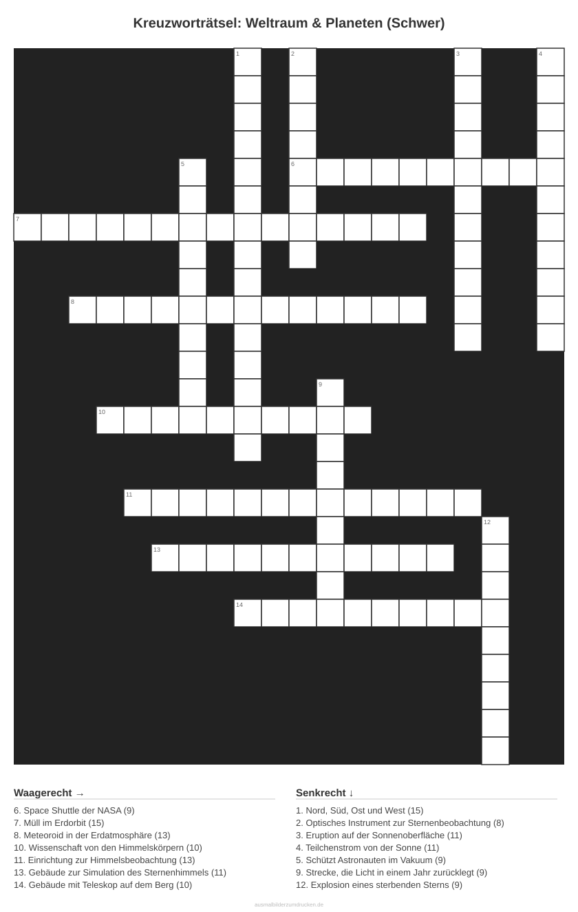 Kreuzworträtsel: Weltraum & Planeten (Schwer)