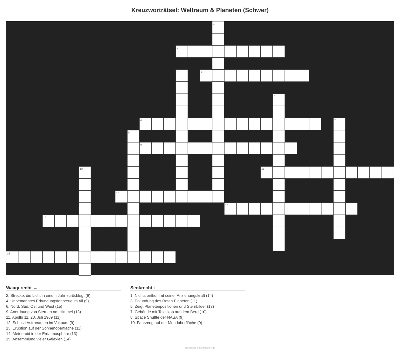 Kreuzworträtsel Kreuzworträtsel: Weltraum & Planeten (Schwer) aus der Kategorie Weltraum - kostenlos ausdrucken