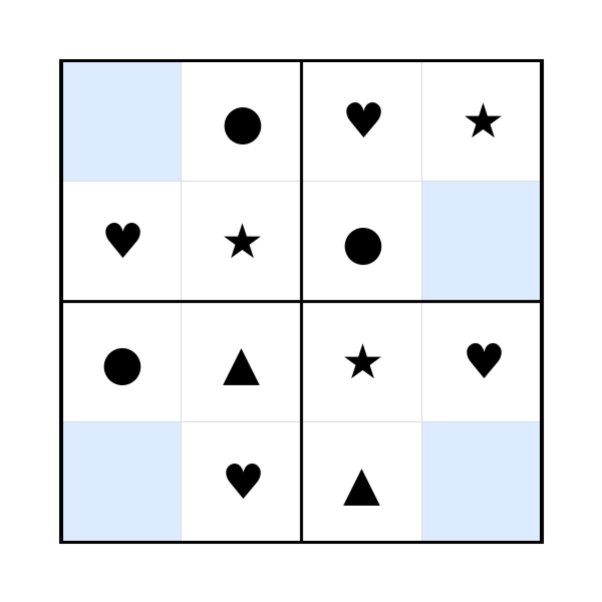 „Sudoku 4x4 (mittel) für Kindergarten“ - ausdrucken, Bleistift zücken, losknobeln. Dieses Motiv aus dem Bereich Sudoku eignet sich besonders für 3- bis 4-Jährige.