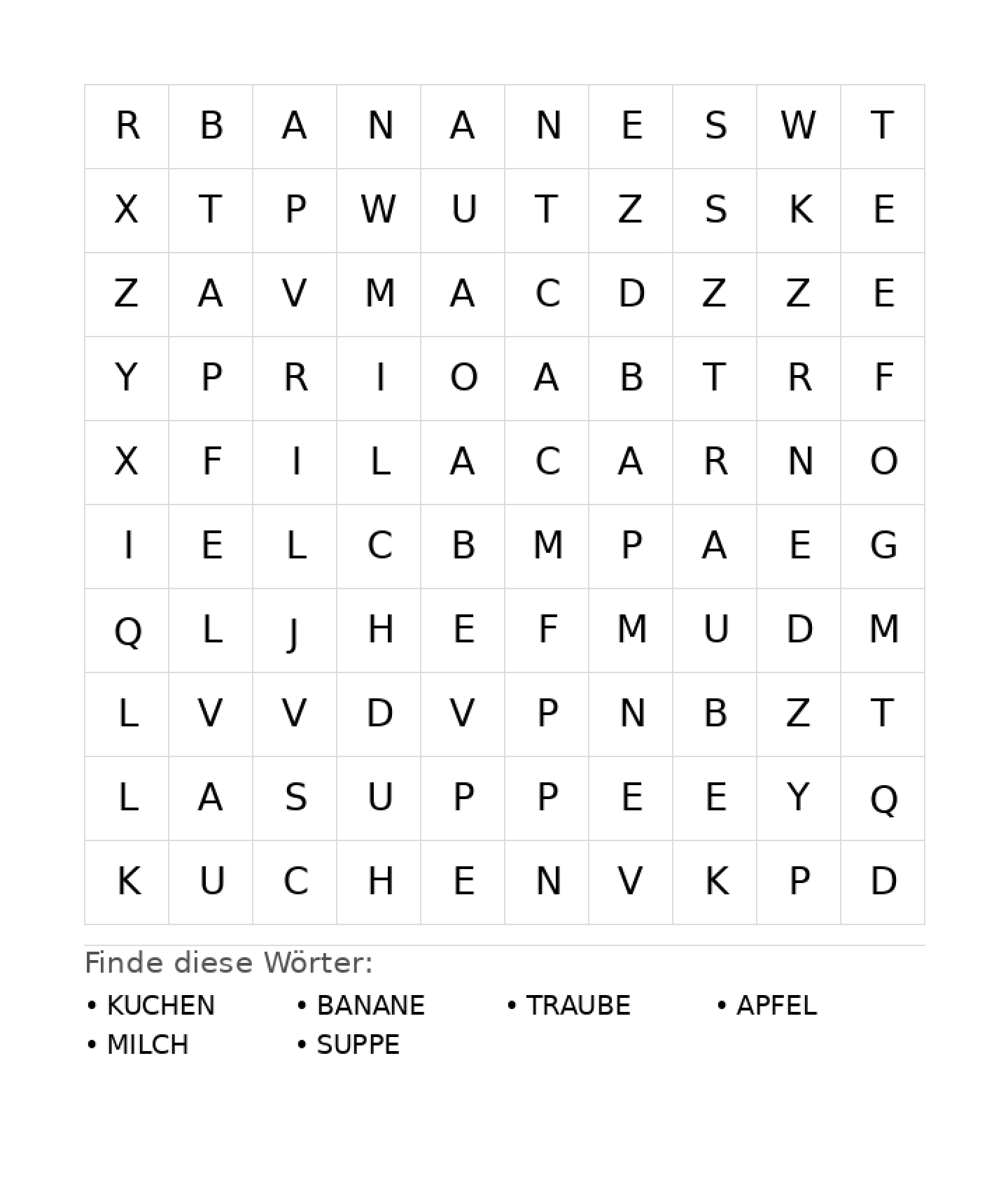 Kinderbuch erstellenWortsuchrätsel: Essen für Grundschule - kostenlos herunterladen