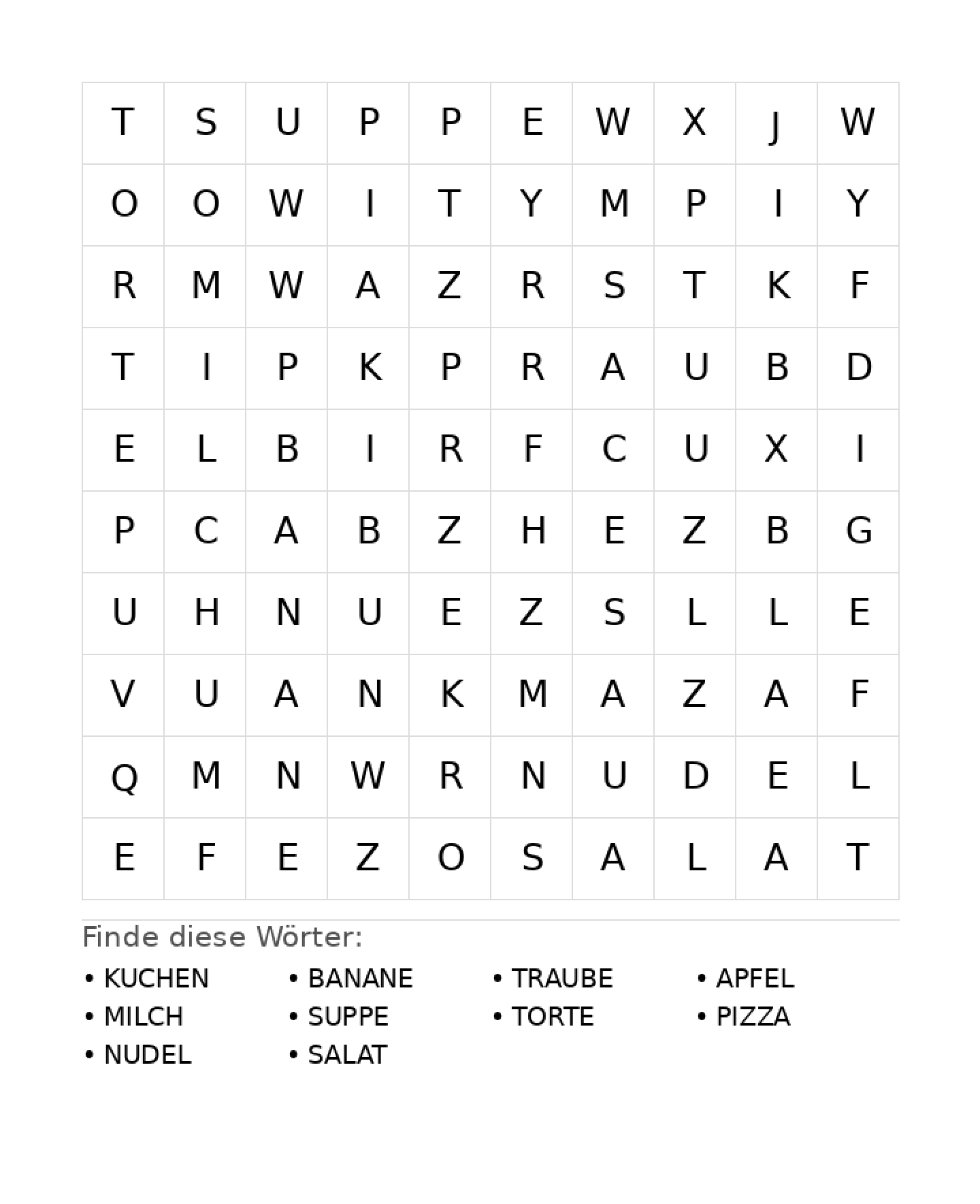 Wortsuchrätsel Wortsuchrätsel: Essen für Grundschule aus der Kategorie Wortsuchrätsel - kostenlos ausdrucken