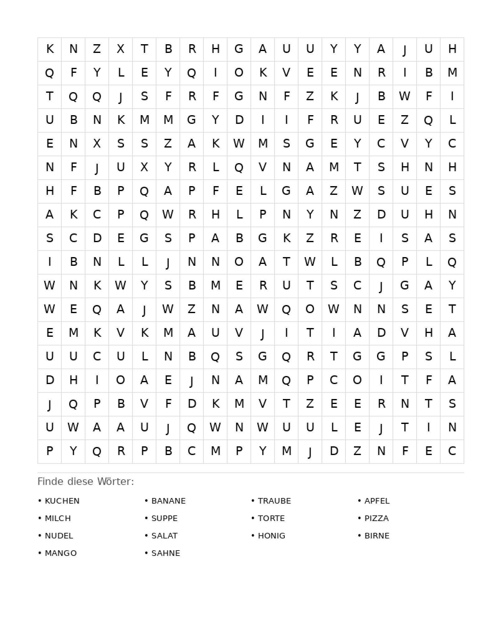 Wortsuchrätsel Wortsuchrätsel: Essen für Erwachsene aus der Kategorie Wortsuchrätsel - kostenlos ausdrucken