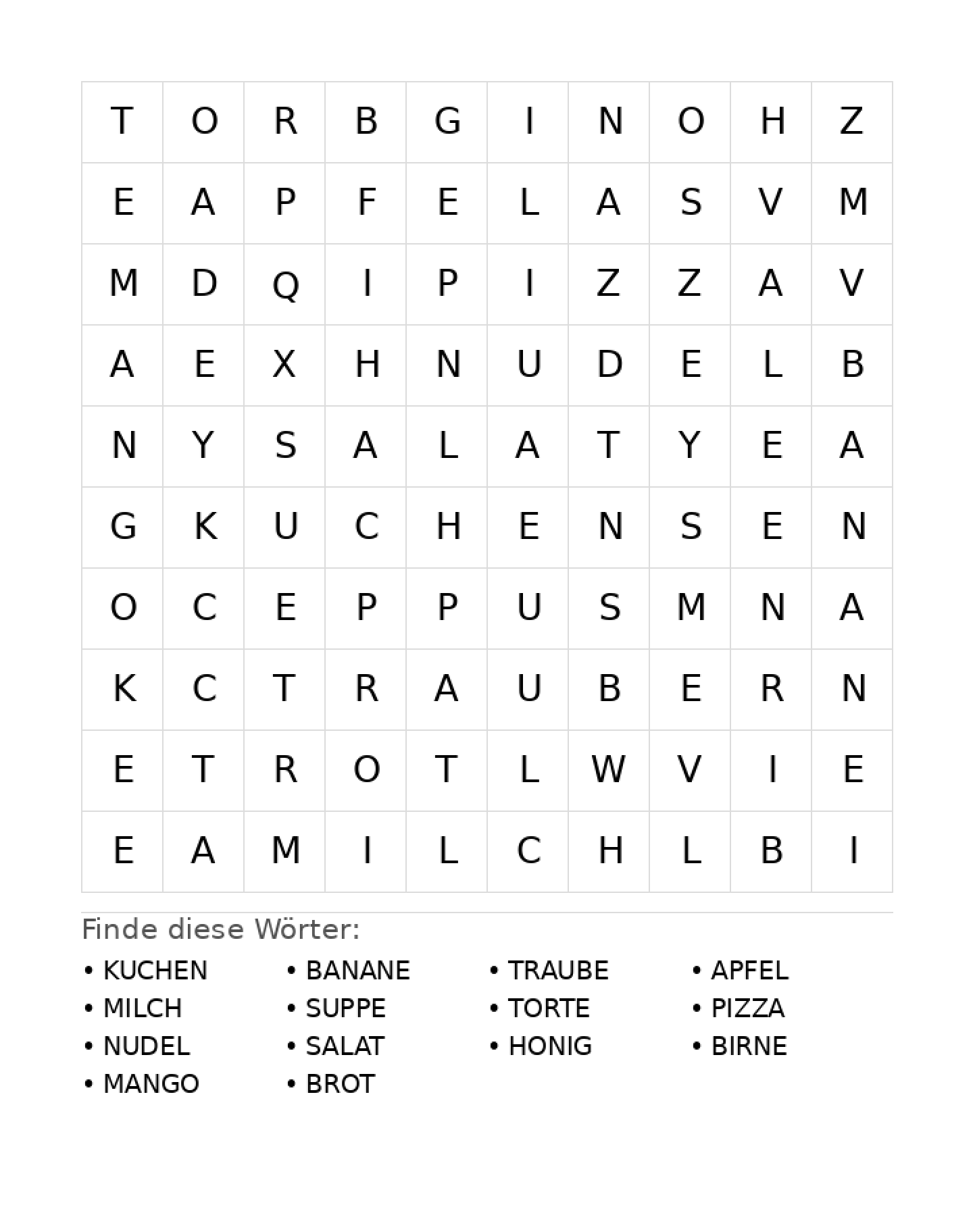 Kinderbuch erstellenWortsuchrätsel: Essen für Grundschule - kostenlos herunterladen