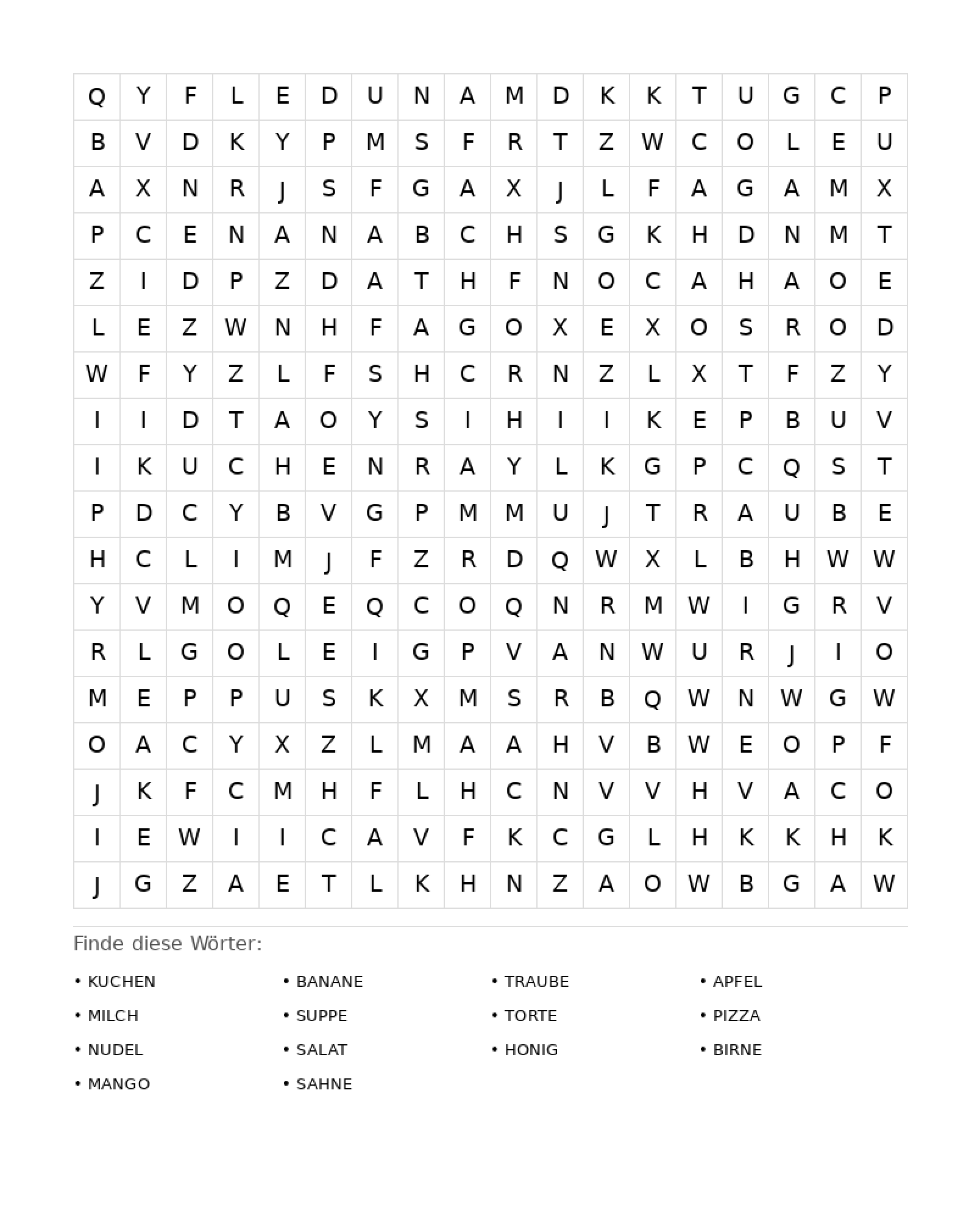 Kinderbuch erstellenWortsuchrätsel: Essen für Erwachsene - kostenlos herunterladen