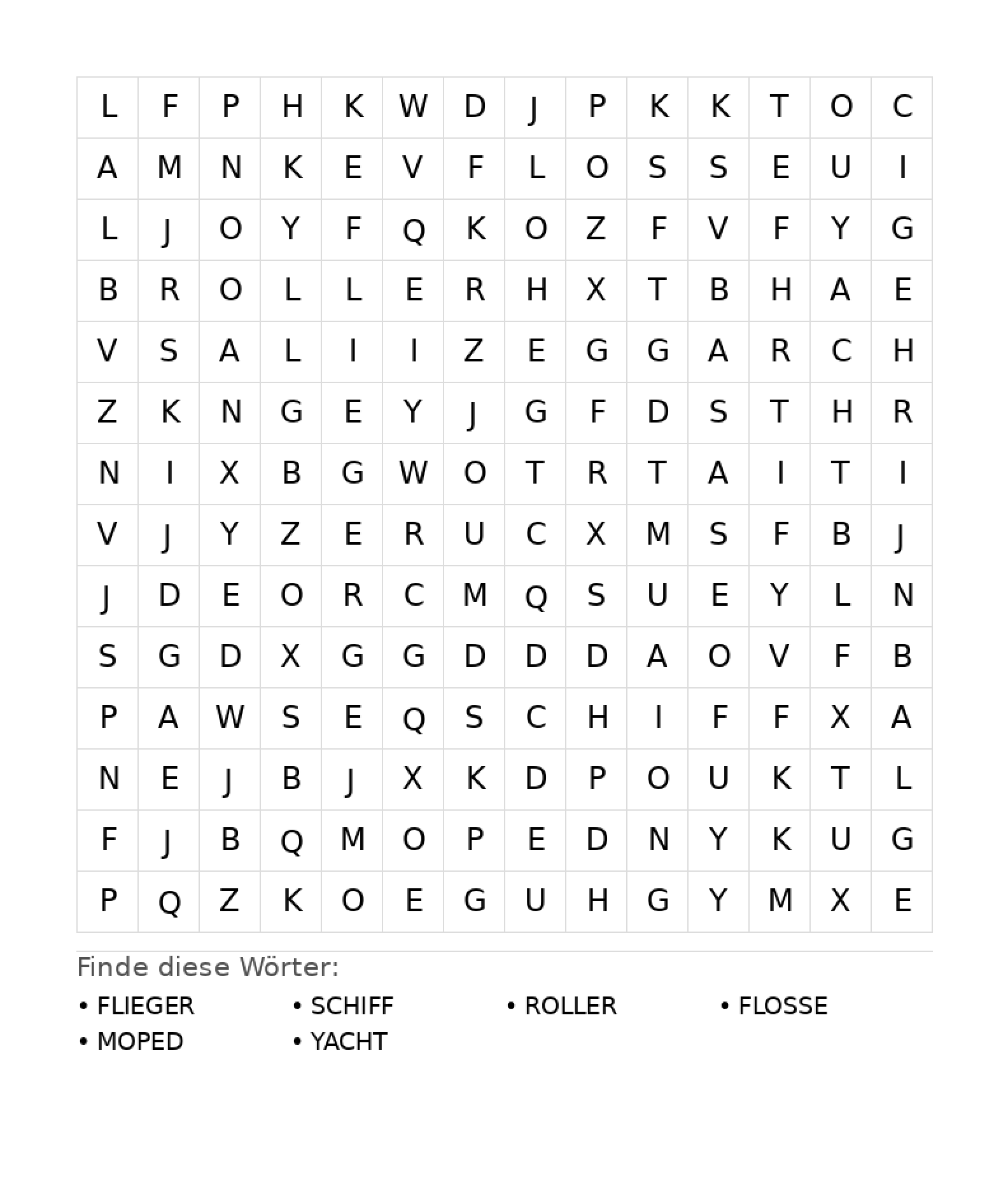 Wortsuchrätsel: Fahrzeuge für Teenager