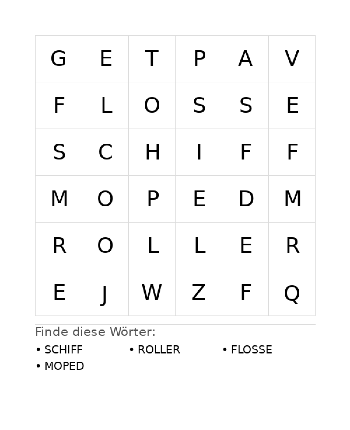 Wortsuchrätsel Wortsuchrätsel: Fahrzeuge für Vorschule aus der Kategorie Wortsuchrätsel - kostenlos ausdrucken