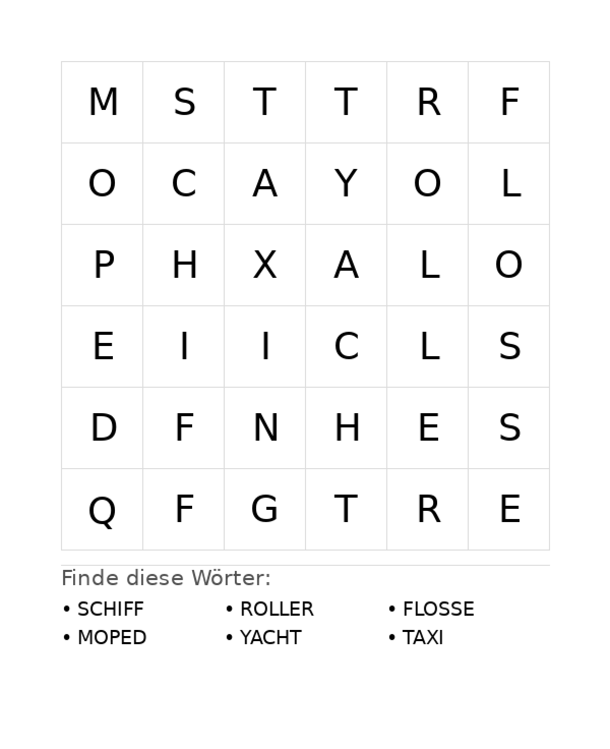 Kinderbuch erstellenWortsuchrätsel: Fahrzeuge für Vorschule - kostenlos herunterladen