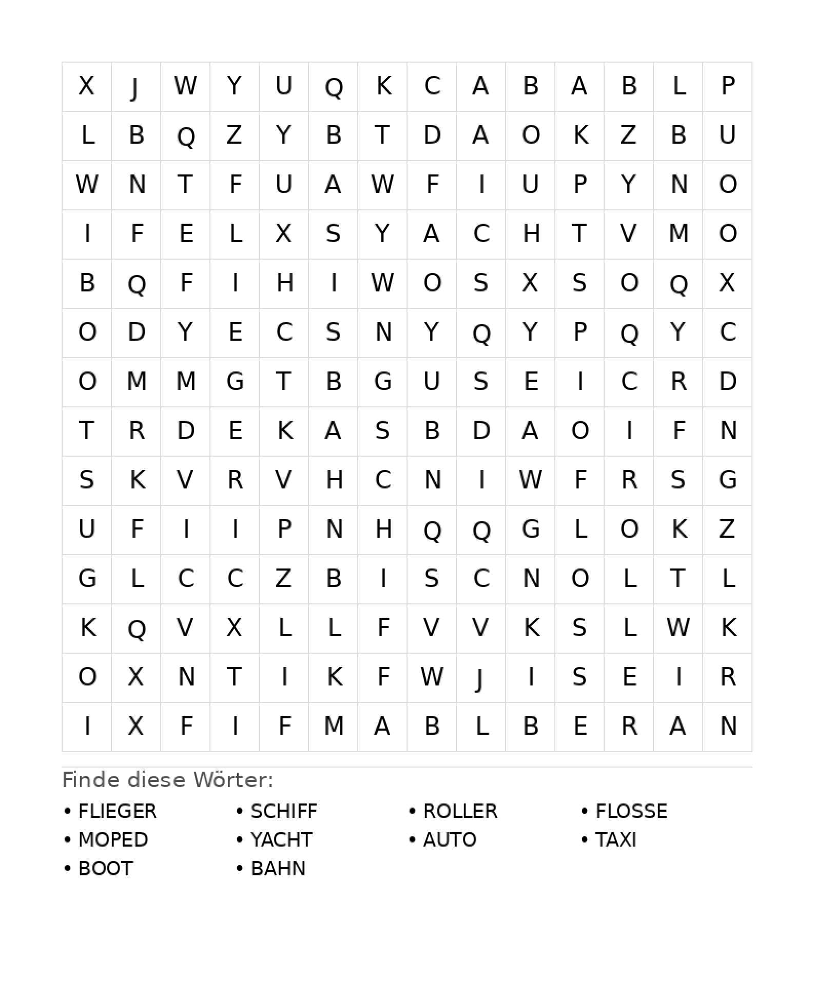 Wortsuchrätsel: Fahrzeuge für Teenager