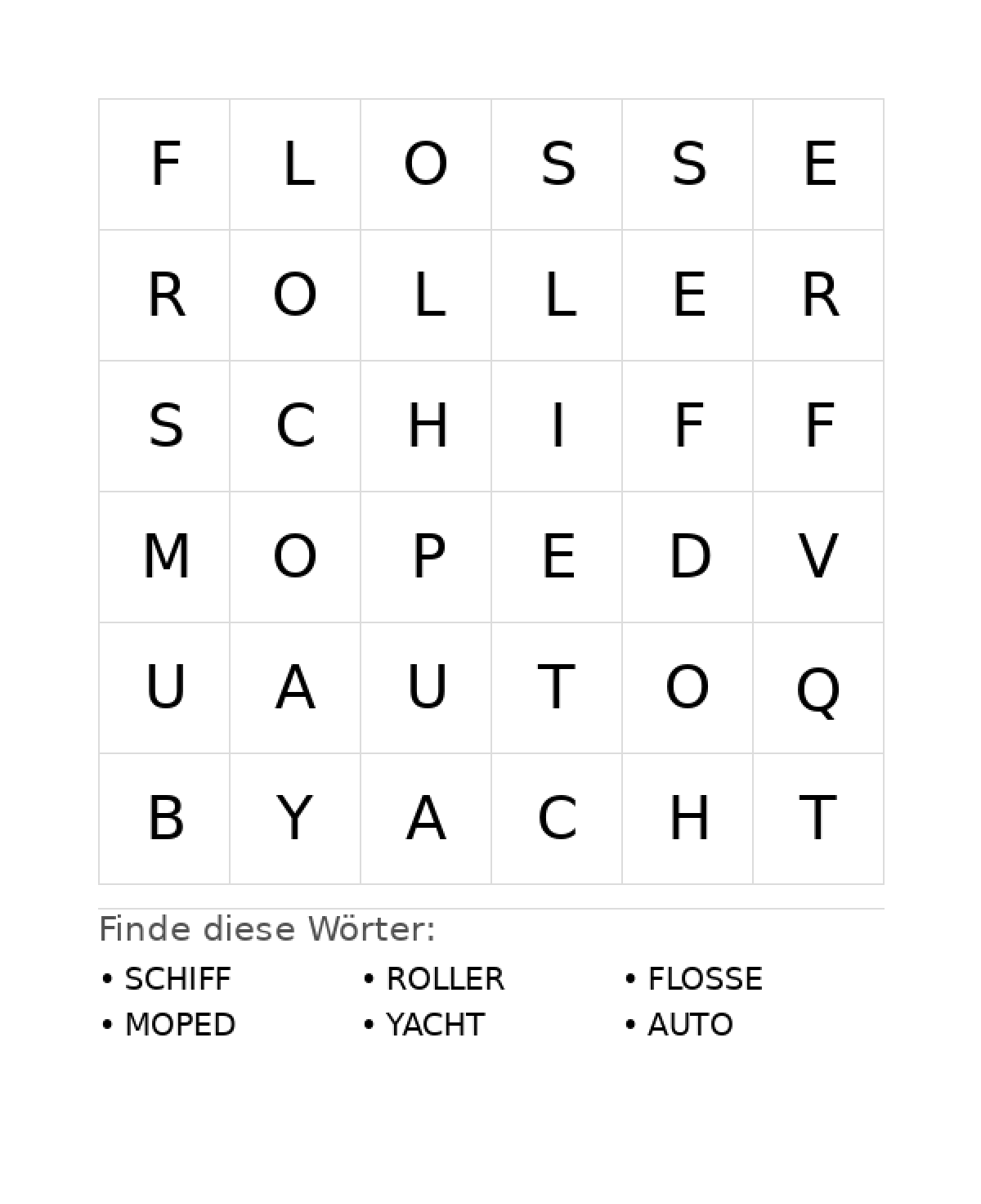 Kinderbuch erstellenWortsuchrätsel: Fahrzeuge für Vorschule - kostenlos herunterladen