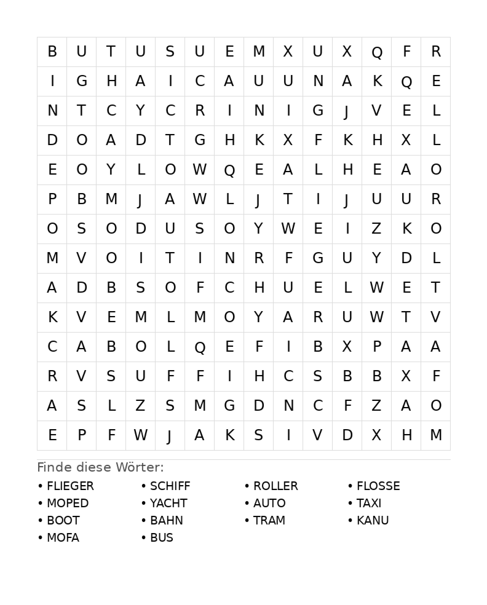 Wortsuchrätsel: Fahrzeuge für Teenager
