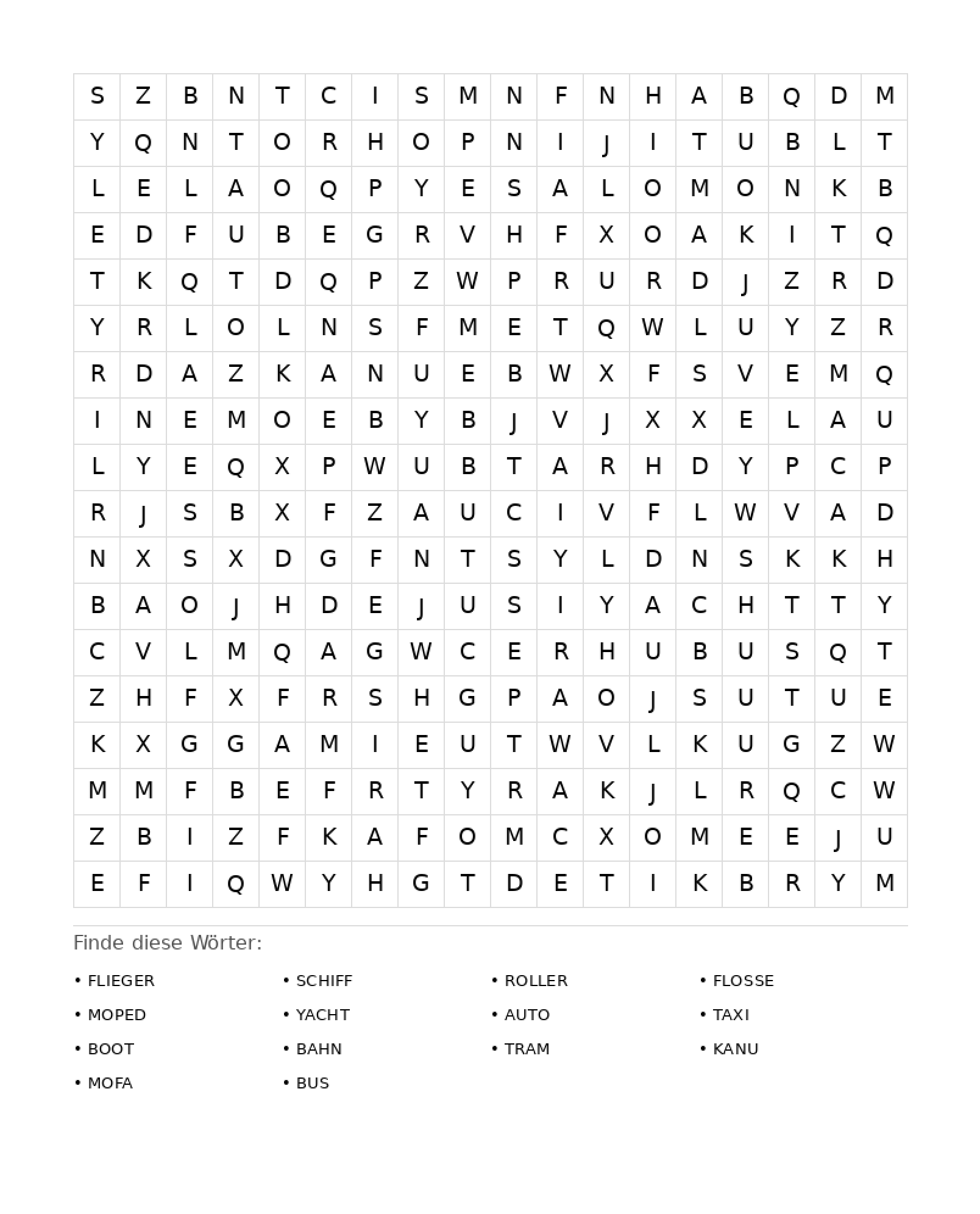 Wortsuchrätsel Wortsuchrätsel: Fahrzeuge für Erwachsene aus der Kategorie Wortsuchrätsel - kostenlos ausdrucken