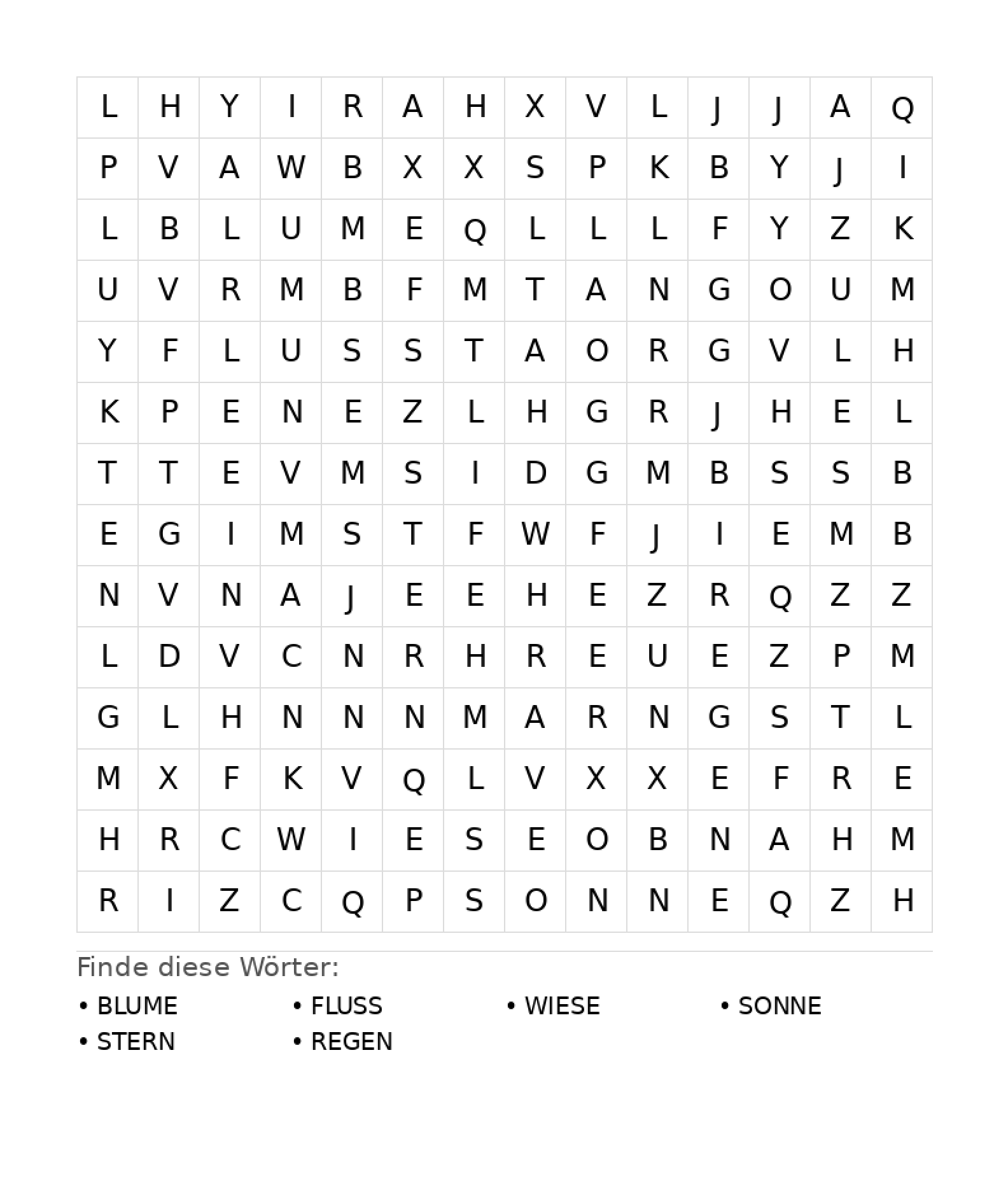 Wortsuchrätsel: Natur für Teenager