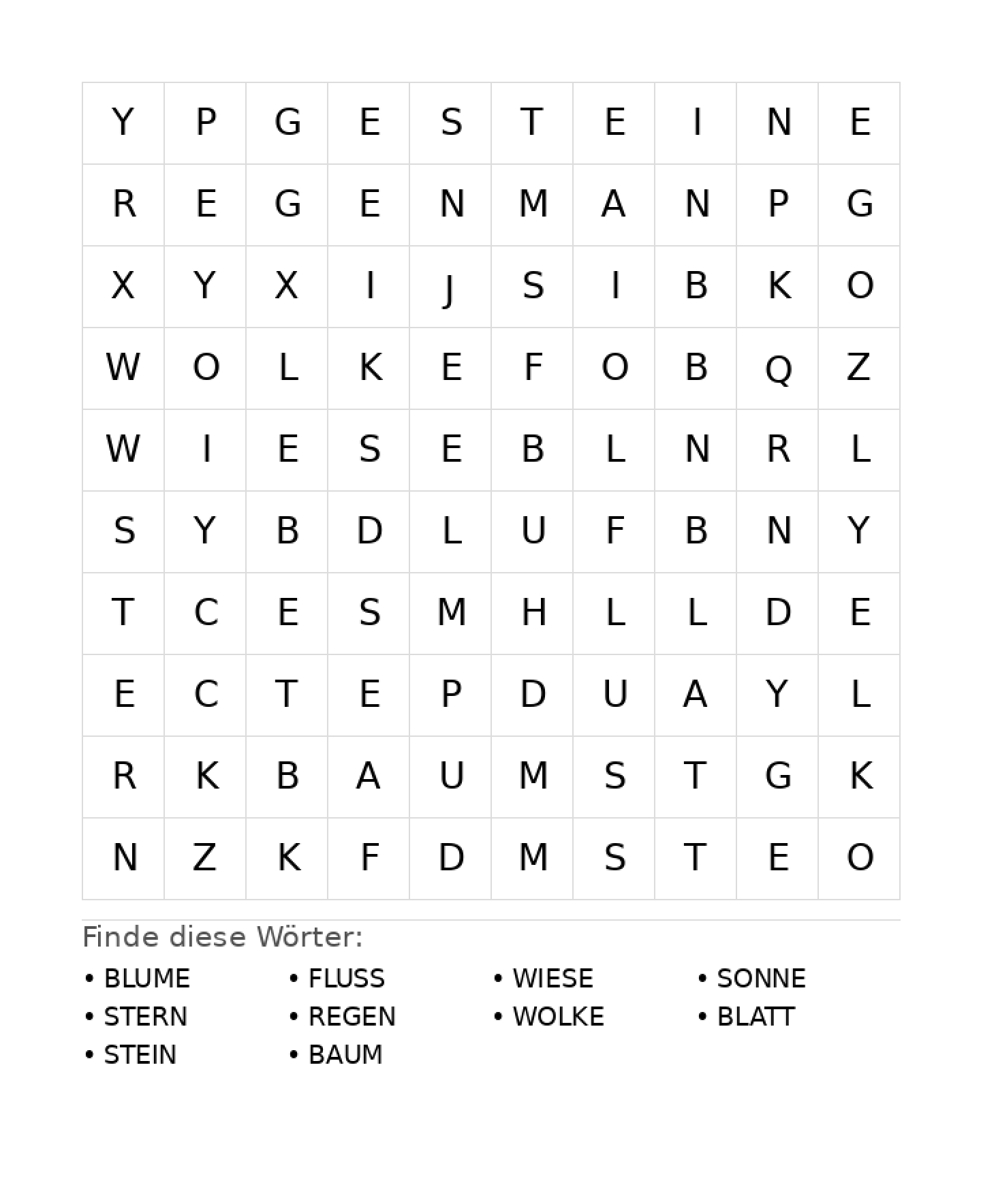 Kinderbuch erstellenWortsuchrätsel: Natur für Grundschule - kostenlos herunterladen