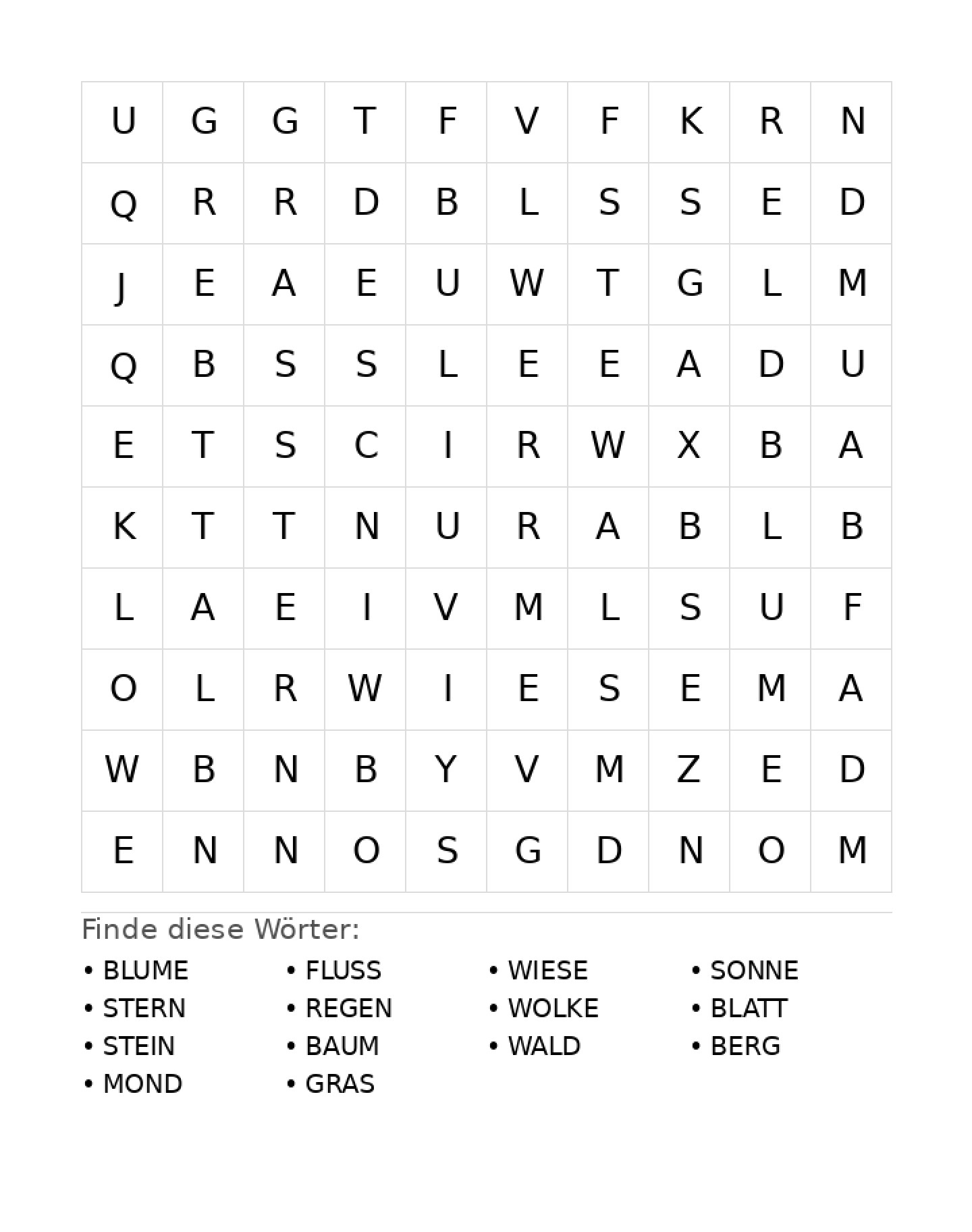 Wortsuchrätsel: Natur für Grundschule