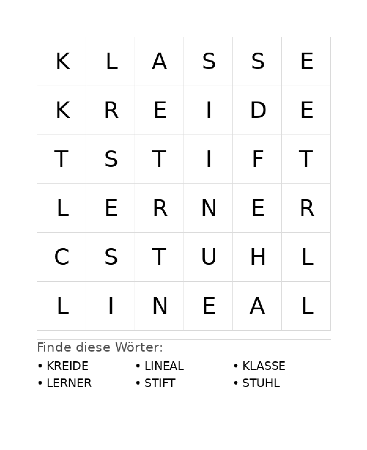 Wortsuchrätsel: Schule für Vorschule