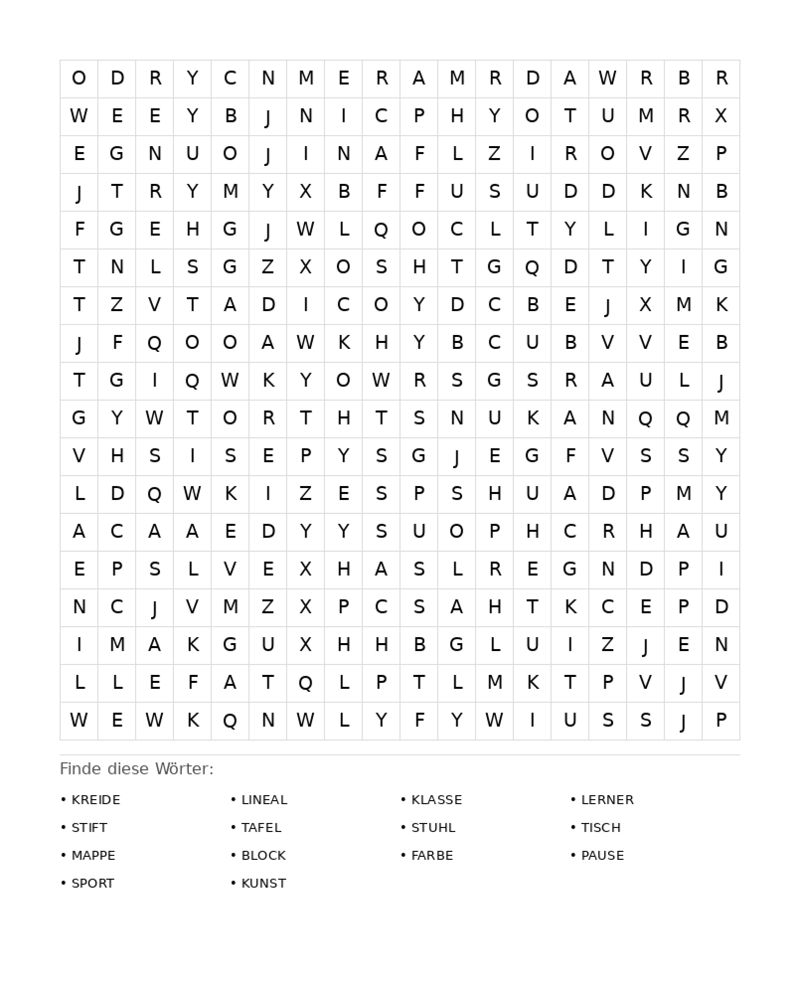 „Wortsuchrätsel: Schule für Erwachsene“ ist Wortschatztraining, das nicht langweilig wird. Dieses Motiv aus dem Bereich Wortsuchrätsel eignet sich besonders für Erwachsene und Jugendliche ab 15.