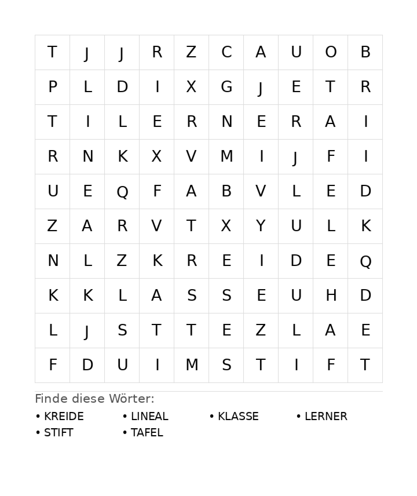 Kinderbuch erstellenWortsuchrätsel: Schule für Grundschule - kostenlos herunterladen