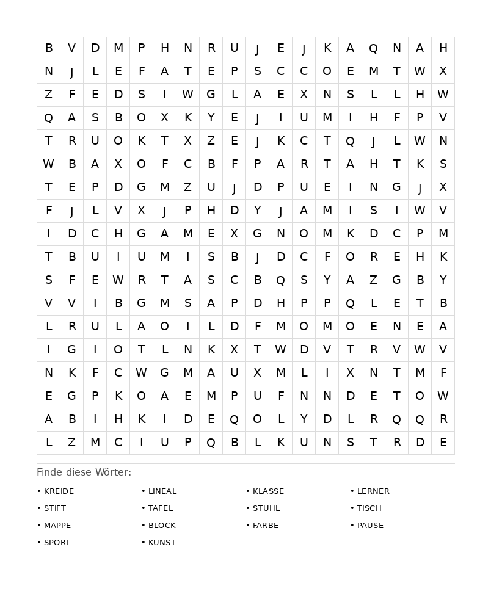 Kinderbuch erstellenWortsuchrätsel: Schule für Erwachsene - kostenlos herunterladen