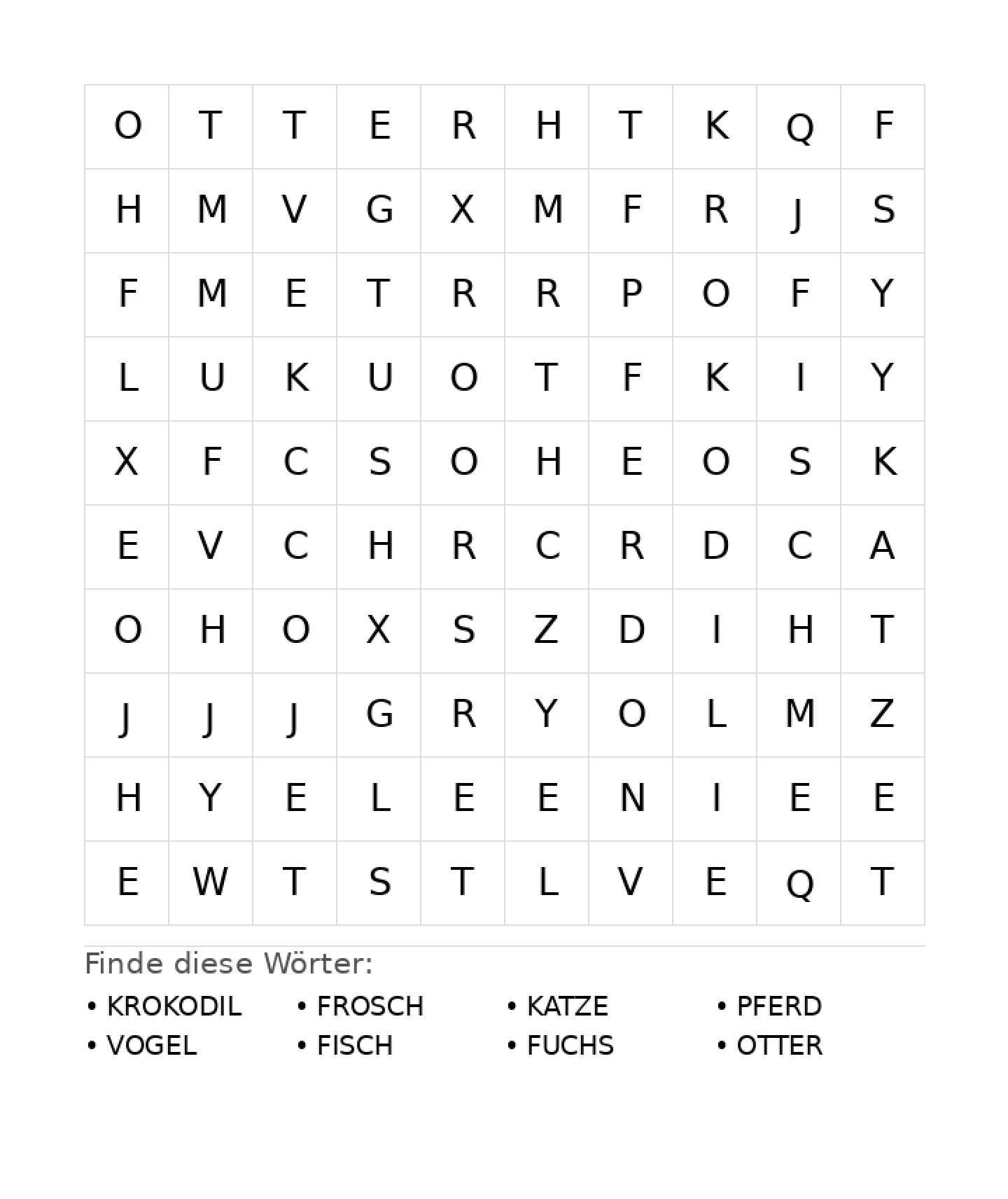 Kinderbuch erstellenWortsuchrätsel: Tiere für Grundschule - kostenlos herunterladen