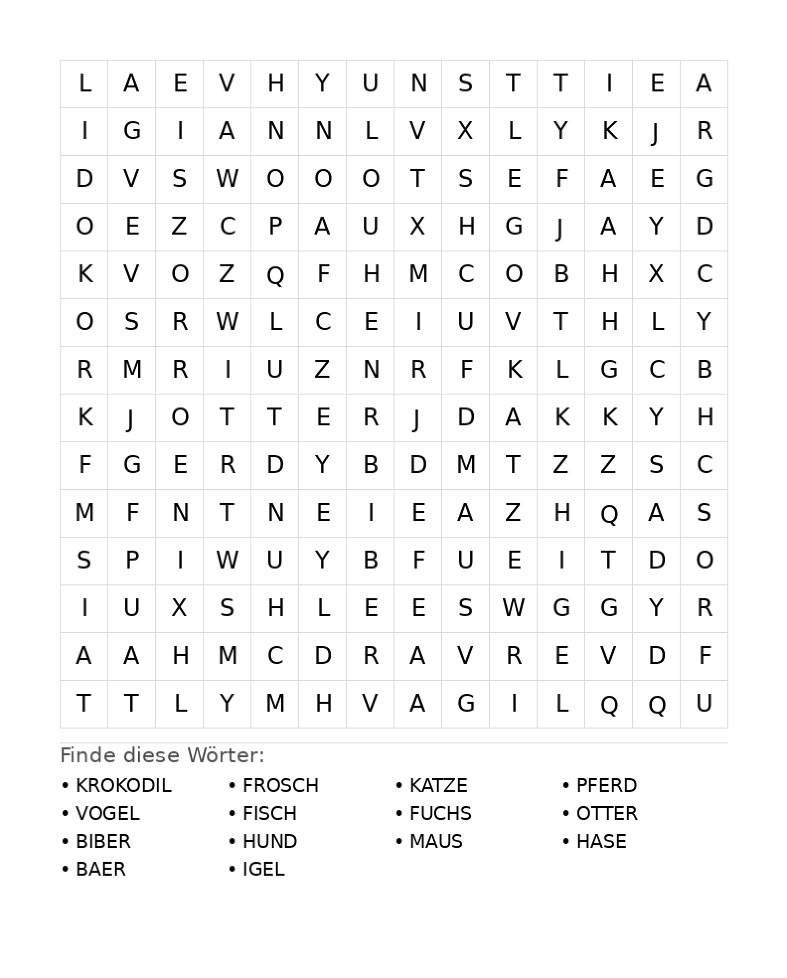 Kinderbuch erstellenWortsuchrätsel: Tiere für Teenager - kostenlos herunterladen
