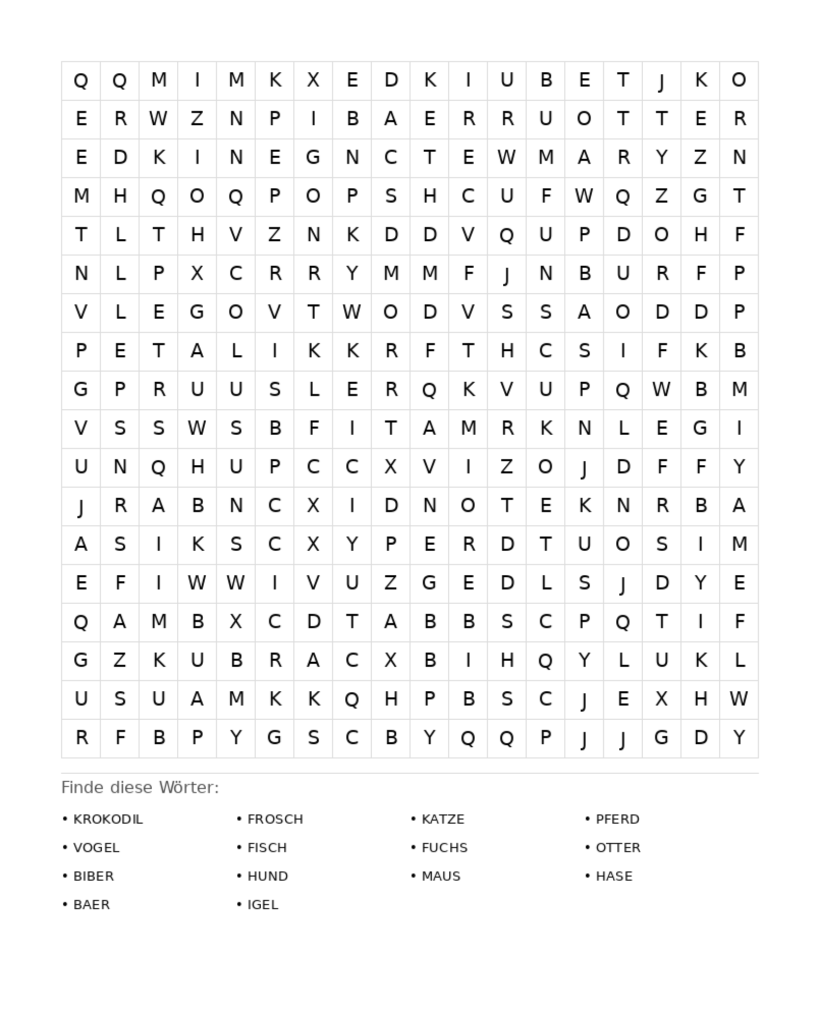 Wortsuchrätsel Wortsuchrätsel: Tiere für Erwachsene aus der Kategorie Wortsuchrätsel - kostenlos ausdrucken