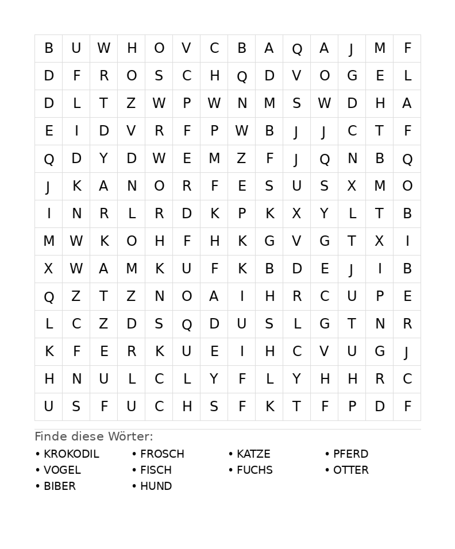 Kinderbuch erstellenWortsuchrätsel: Tiere für Teenager - kostenlos herunterladen